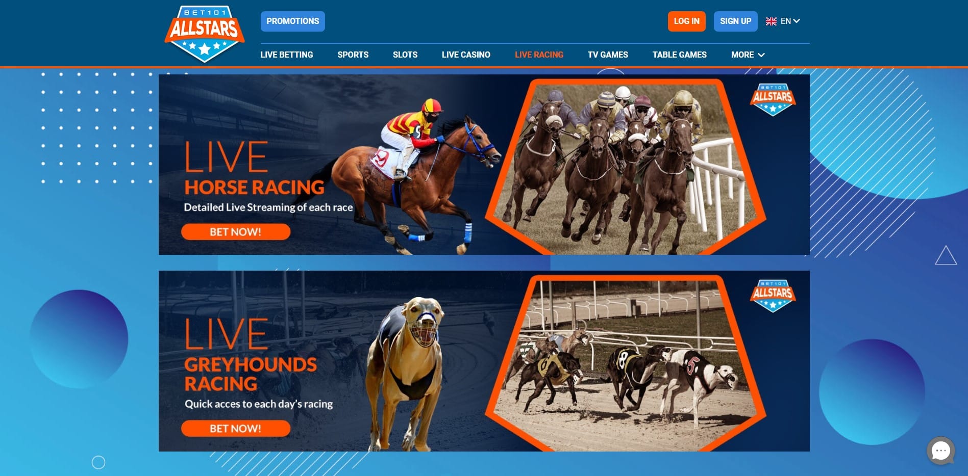 If you have ever visited the pioneering online sportsbook BetUs, you will instantly recognize the visual similarities between that site’s old design and the one implemented by AllStars Bet101. The colors used here are mainly blues, with some dark orange thrown in for contrast. We did not understand what purpose the random geometric patterns in the site’s background image served and how they relate to online gambling, but, oh, well. We guess someone thought that they looked pretty. In terms of UX design, everything here functions well. Yet, some of the UX methods used and its organizational structure are somewhat outdated. The platform has a very late-2000s, early-2010 feel.