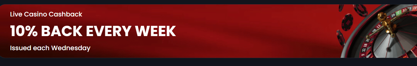 We saw a live casino cashback of 10% advertised on the streaming game page but could not find any info on it. We inquired about this and got told that this is an old offer that is invalid and should get removed soon from the website. Bummer.