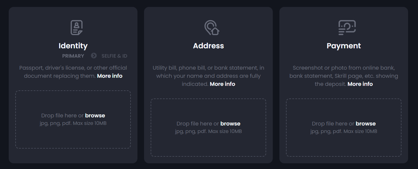We did review the T&C, quite in-depth and saw that it said that here KYC becomes mandatory after you tally up €2,000 in cumulative withdrawals. That said, the BitKingz team can impose identity verification on you even before this if they think they should. If you have not logged in on this site in a year, you can also expect a KYC request, which will demand proof of ownership of payment method, proof of address, and a government-issued ID. In some cases, selfies and video verification may get required.