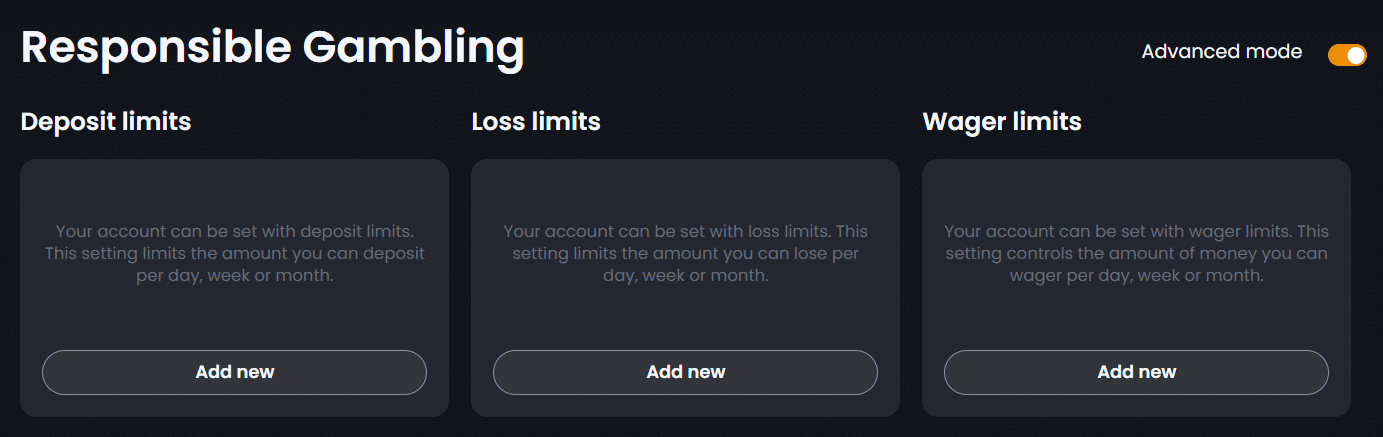 On the same page, this site allows you to set loss limits aimed to cap losses over the same periods and wager limits to regulate betting amounts. Self-exclusion is also possible through the same section, as is the activation of cooling-off periods.