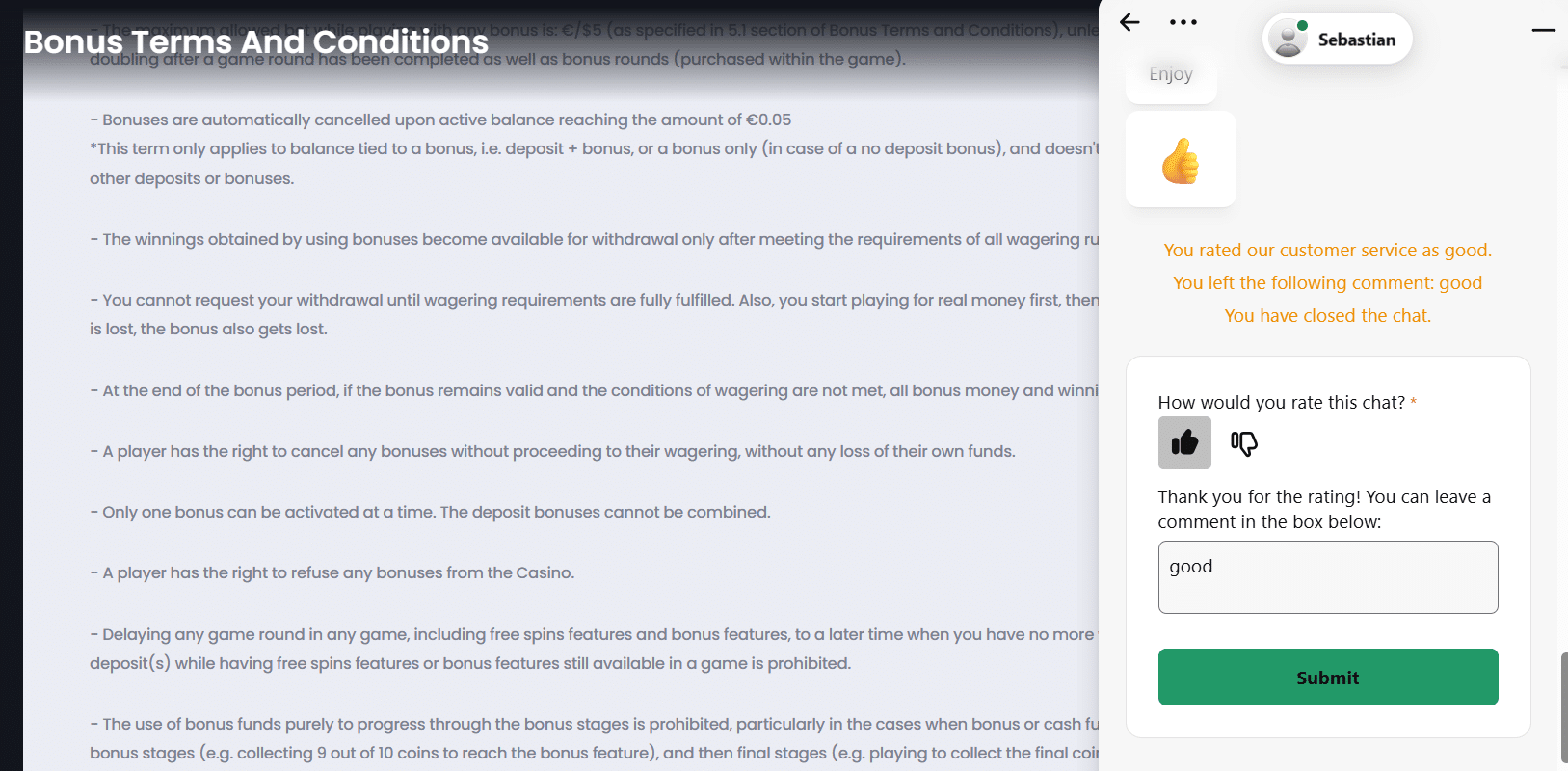 They are detailed and clearly structured, outlining all the restrictions and responsibilities that are customary for these pages. Naturally, most rules favor the casino. We liked that you will find loads of legal jargon here, but it gets mitigated by practical examples, terrific for laypeople, novice users. Of course, some clauses lack specificity, or in other words, are quite vague, which is not unusual, sadly.