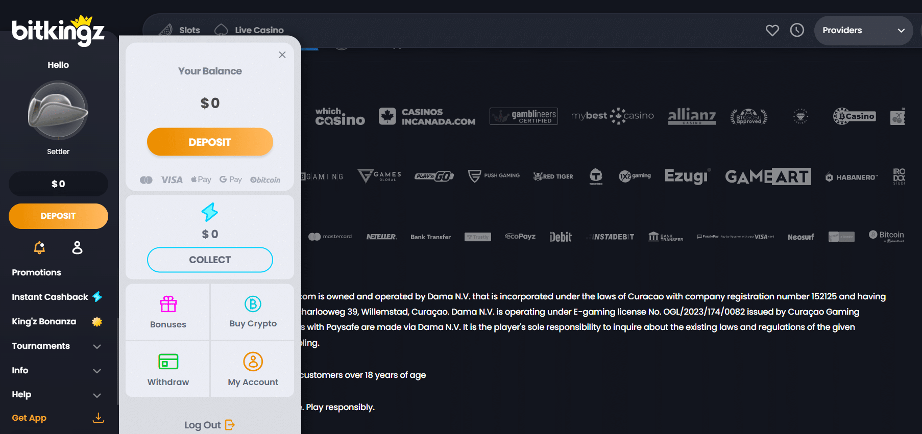 Yes. It gets run by a highly reputable operator, Dama N.V., which has established BitKingz as a super trustworthy brand in the crypto-gambling space.