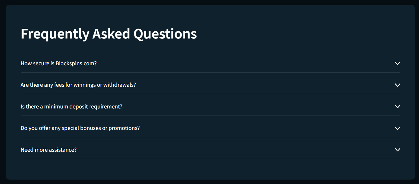 Per the T&C page, all Blockspins users are required to wager the amount they deposit on the site at least once before requesting a withdrawal. That’s pretty reasonable and ensures fair play. We remember a time when no general deposit rollover rules existed, but in today’s landscape—and for a site offering these kinds of games—this is as good as you’re going to get. Note that withdrawal requests will be delayed if this condition is not met.