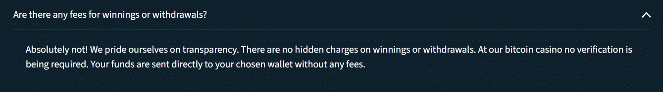 The general minimum withdrawal limit on this platform is €5. Therefore, you should be able to withdraw any amount equal to or above that. We would call this limit very reasonable, and lower than what many of our other reviewed crypto-gambling brands, more famous ones demand.