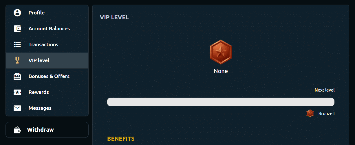 We have to be honest with you and tell you that the support agent we spoke to did not seem super informed about how this system works. We asked him what were the VIP level milestones, and he did not know. He also did not know if different games contributed differently to XP accumulation. Hence, we cannot tell you what you must bet to advance to a specific level. What we can say is that the VIP scheme consists of fourteen tiers. They are Bronze I, Bronze II, Bronze III, Silver I, Silver II, Silver III, Gold I, Gold II, Gold III, Platinum I, Platinum II, Platinum III, Diamond, and Obsidian.