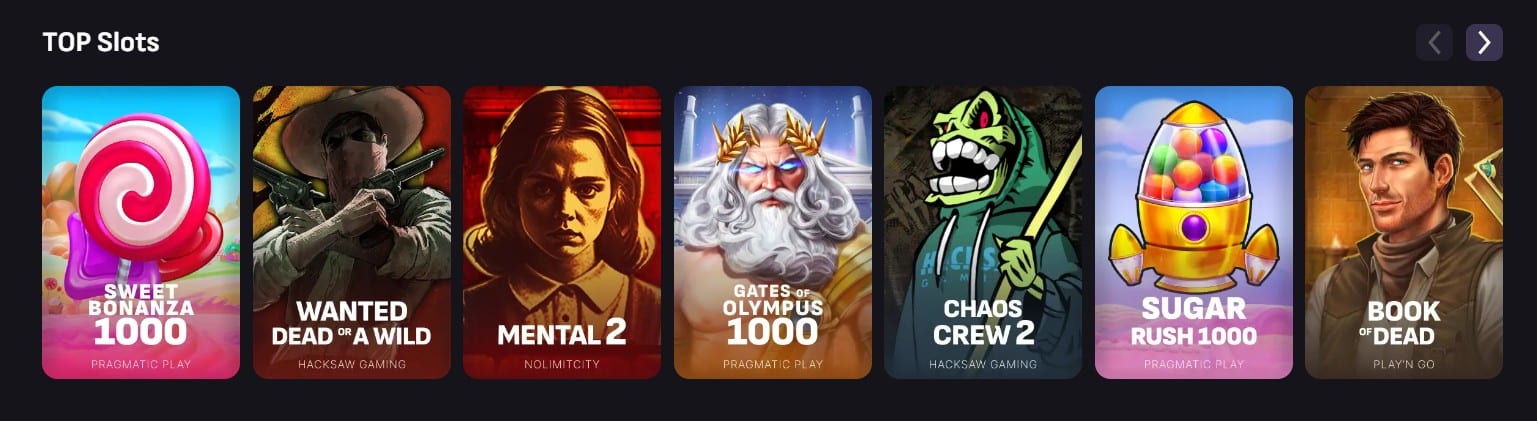 These titles are organized into the following categories – Live Casino, Wager Slots, Bonus Buy, Game Show, New Games, All Games, and TOP Slots.