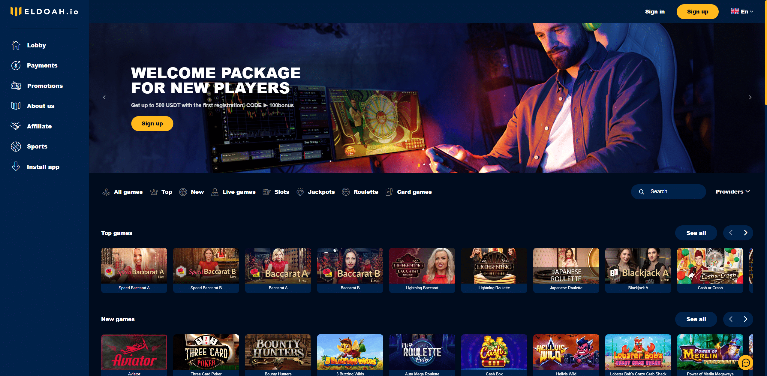 Eldoah.io is a brand new crypto casino with over six thousand games and a quality sportsbook.