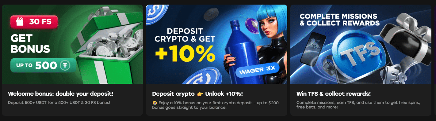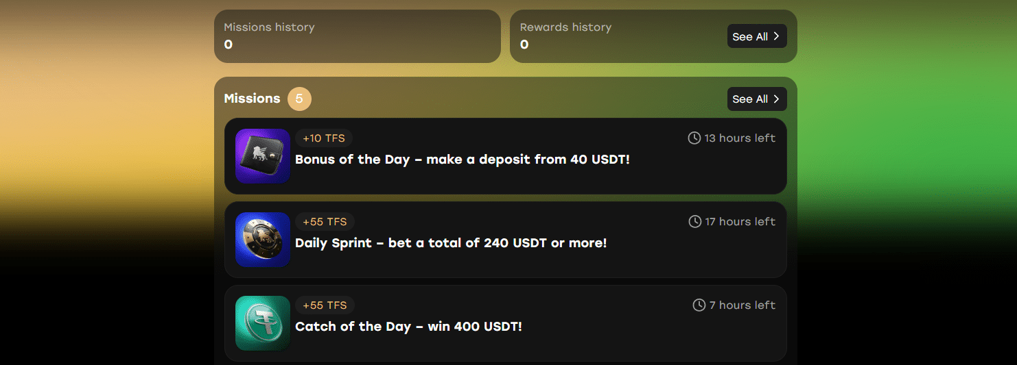 On this site, you can complete daily, monthly, and one-time tasks, such as placing bets, making deposits, or filling out surveys. Doing this will earn you TFS tokens, which can then be exchanged for rewards, free spins, bets, bonuses, and physical items in the Fairspin Store. The bonuses should land in your account a day after approval, and physical prizes will get shipped within three business ones, but they will require KYC verification.