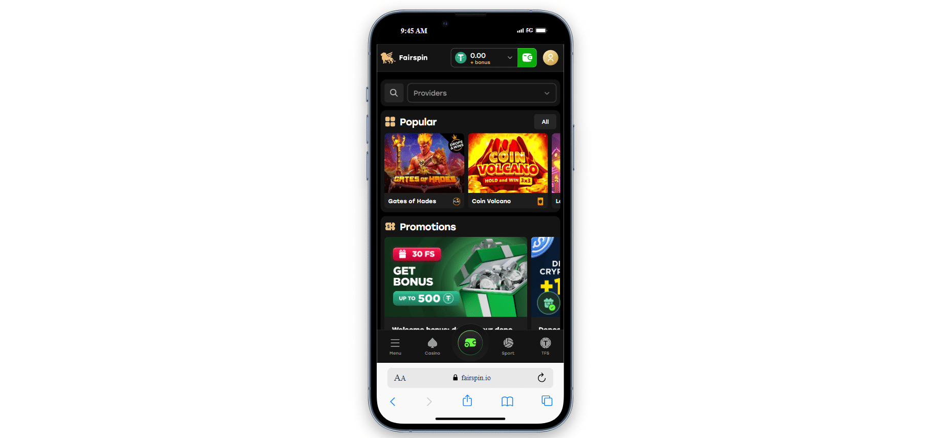 There is no Fairspin mobile app, but the site is highly responsive. On a smartphone screen, the organization is pretty good, with games set up in a two-column layout. The sportsbook looks good as well, as nothing is overly crowding the display, and you have a bottom-screen navigation bar, which changes when you move over to the token page. There is also the top bar, where the deposit button rests when you are browsing the Fairspin mobile version. When you are inside a game, you will see a bottom screen arrow, which when you press, the green deposit button pops up, along with a favorite icon and a home one.