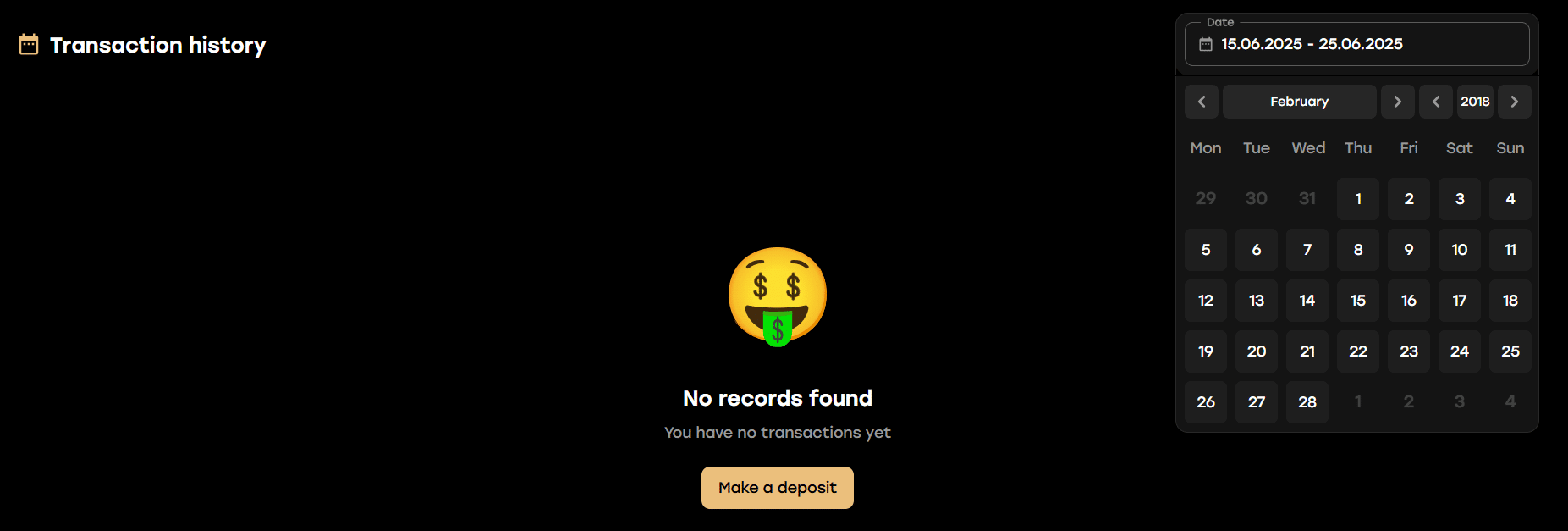 You can check out your transaction history at Fairspin through the cashier window, but there seems to be no possibility for you to review your login data here. We saw no such option on the profile page. Contacting the help team at support@fairspin.io can likely assist you with accessing detailed histories if you must get to that data. Send them an email and ask for your account activity records.