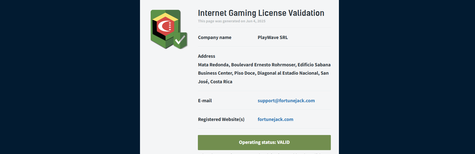 FortuneJack’s operator now is PlayWave SRL, but in the past, we have seen Nexus Group Enterprises get cited as this platform’s operator. We could not find any other gambling websites linked to these two entities.