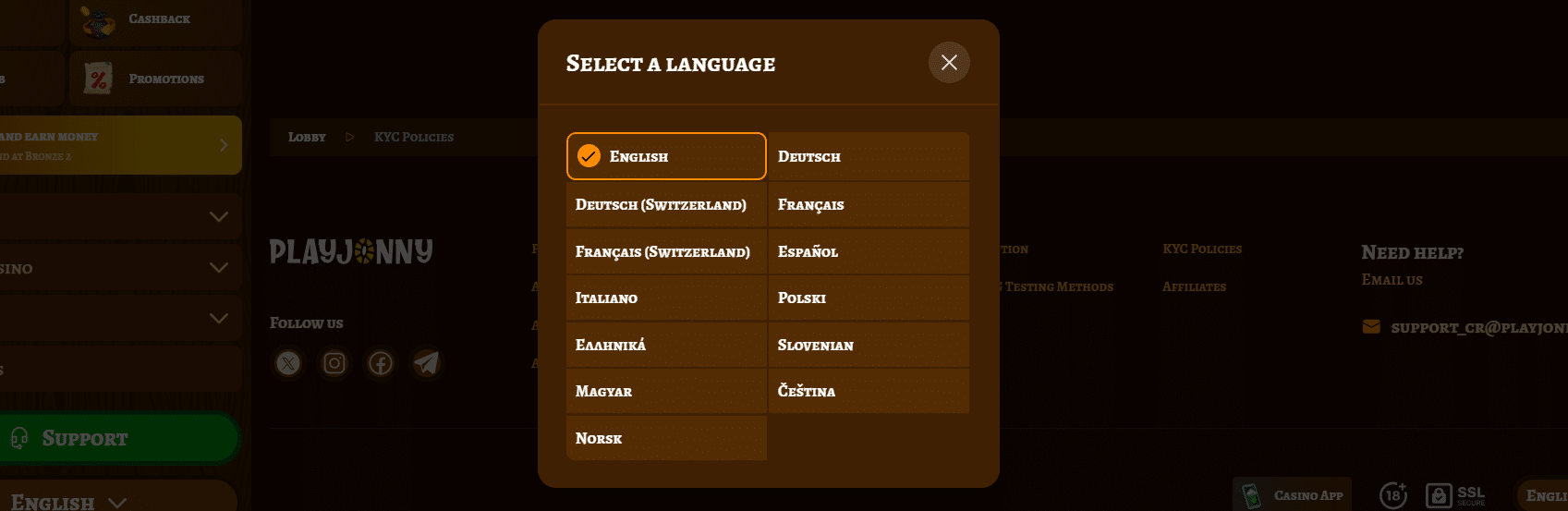 The official Telegram had thirty-five members when we wrote this PlayJonny review. The official X page had one follower. The Facebook one had eighteen, and the official Insta had zero. Thus, when we scanned this brand, it had virtually no community built around it.