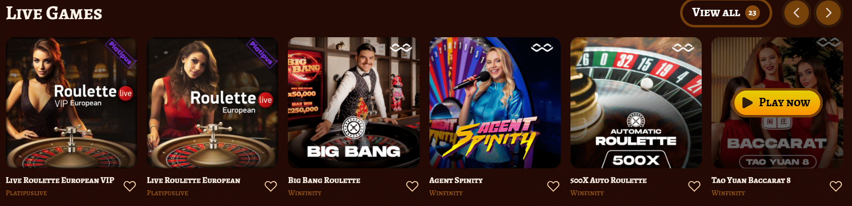 Most of the slots have their default max bet caps, and Winfinity’s live options have a $1,200 maximum wager per round. This makes it better to search for alternative crypto casinos for high stakes betting.
