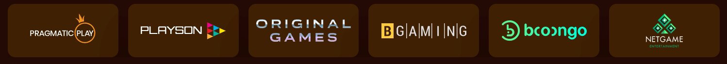 They are – Pragmatic Play, Playson, Original Games, BGaming, Booongo, NetGame, Spinomenal, Pragmatic Live, Fugaso, GameBeat, EGT (Euro Games Technology), Evoplay, Nolimit City, 1X2Gaming, Mancala Gaming, Clawbuster, Betsoft, Apparat, TrueLab, Popiplay, Slotopia, Spadegaming, MGA Games, Gaming Corps, Zillion Games, Merkur Gaming, Tom Horn Gaming, Betgames, Gamzix, Felix Gaming, Platipus, Mascot Gaming, KA Gaming, Peter & Sons, Caleta Gaming, Jelly, Bulletproof Games, Yggdrasil, Reflex Gaming, Turbo Games, Swintt, Gamomat, 777 Jacks, and Onlyplay.