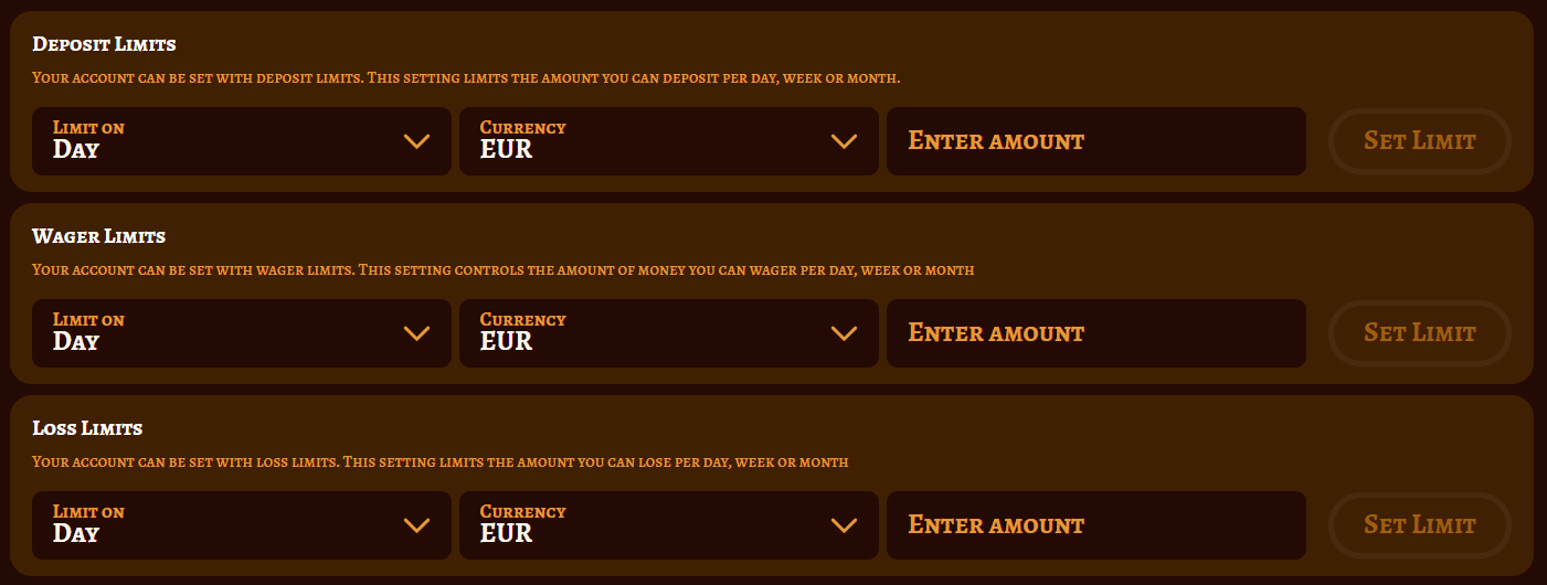 Yes. You can find deposit, loss, wager, and session limit tools in your account, where there is also a tab dedicated to self-exclusion. You can activate such a ban from there, but know that it initially begins as a twenty-four-hour cooling-off period. After this day passes, you can select to extend your site restriction to a day, week, half a year, or permanently.