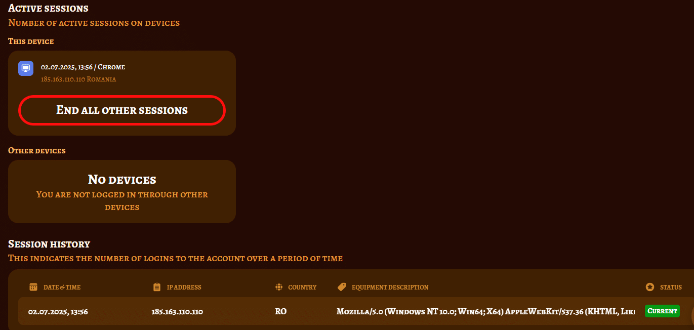 You can do both. From inside your profile, you can see your active sessions and from what devices you have logged in here. You can also review your session history at PlayJonny. In the history page on your account, you can check out your transaction, betting, and bonus records. Accordingly, we are all good on this front.