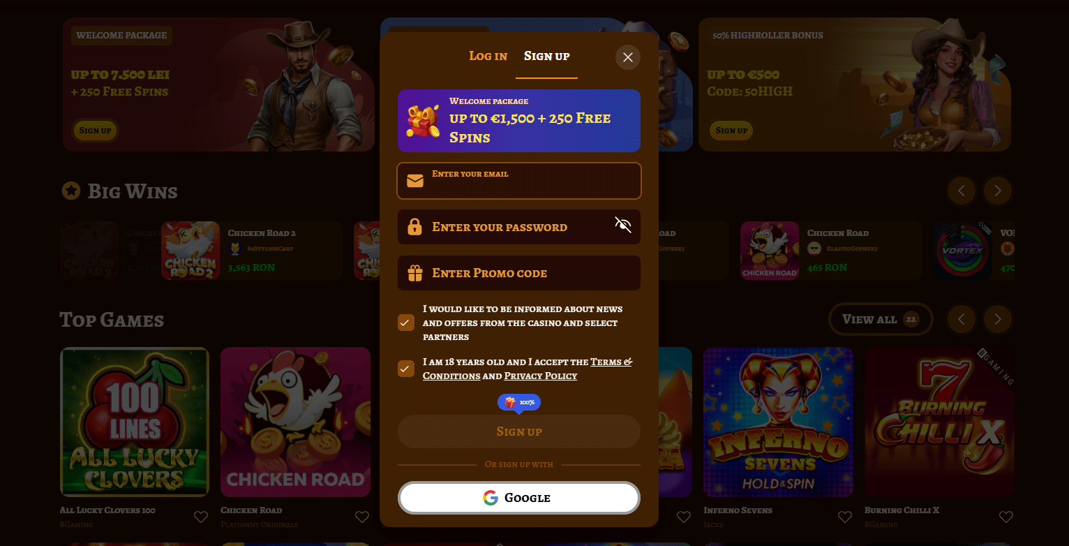 You can join PlayJonny with your Google credentials, or you can go the simple basic route by inputting your email, entering a password, and checking a box that confirms you are over eighteen and that you plan on adhering to the general terms PlayJonny’s team has laid out.