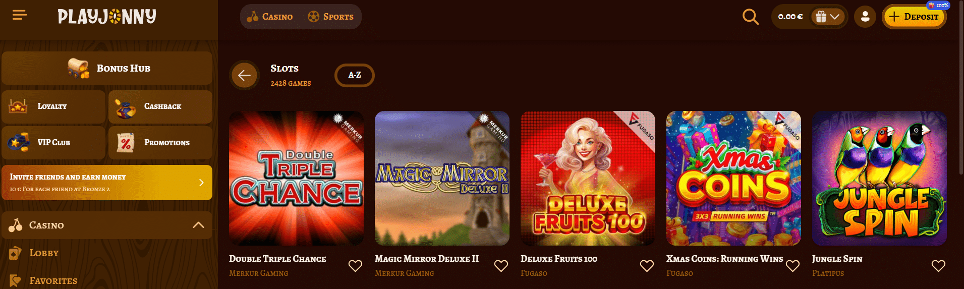 PlayJonny is a 2026 hybrid casino with many games, many bonuses, competitions, and a good loyalty system.