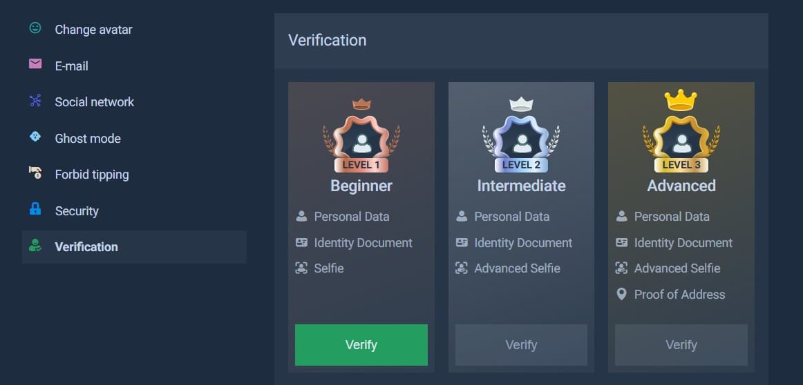 According to the site staff – there is no limit to how much you can withdraw here, and KYC can happen at Tower.Bet, but it is rare. There are three levels of KYC for you to complete on your profile page. Beginner, Intermediate, and Advanced. You should also meet an x1 general deposit rollover at this crypto casino before requesting a withdrawal.