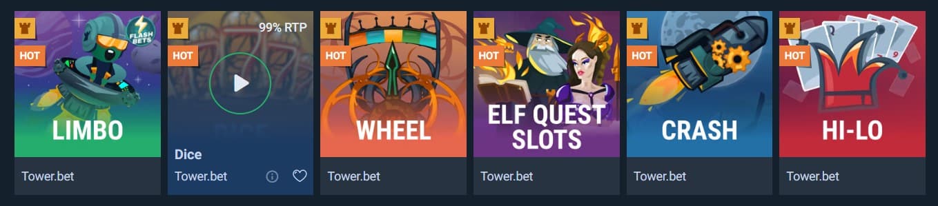 Games offered by Tower.bet