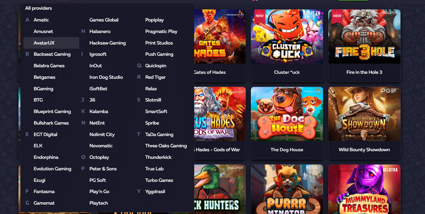 They are – Amatic, Amusnet, AvatarUX, Backseat Gaming, Belatra Games, Betgames, BGaming, BTG, Blueprint Gaming, EGT Digital, ELK, Endorphina, Evolution Gaming, Ezugi, Fantasma, Gamomat, Games Global, Hacksaw Gaming, Igrosoft, InOut, Iron Dog Studio, iSoftBet, Jili, Kalamba, NetEnt, Nolimit City, Novomatic, Octoplay, Peter & Sons, PG Soft, Play’n Go, Playtech, Popiplay, Pragmatic Play, Print Studios, Push Gaming, Quickspin, Red Tiger, Relax, Slotmill, SmartSoft, Spribe, TaDa Gaming, Three Oaks Gaming, Thunderkick, Top Spin, True Lab, Turbo Games, Yggdrasil.