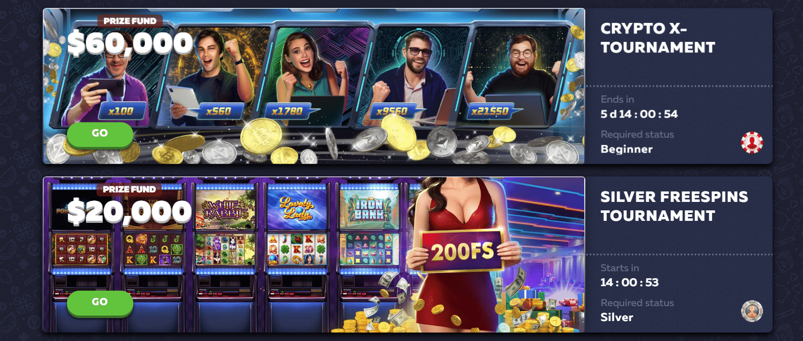 Vavada must do a much better job of advertising their contests, which you can find under the Events tab in the casino lobby. At first, we thought this platform had no competitions, but then we clicked on the Events tab and saw that it offers a variety of time-limited tournaments with prize pools ranging from $20,000 to $60,000, tailored to different player statuses. You must meet the required status to join, with recurring opportunities for all tiers. These events have prize funds that differ, rewards given out in free spins, or bonus funds. Most of them delivered rewards to those in the first twenty leaderboard spots.