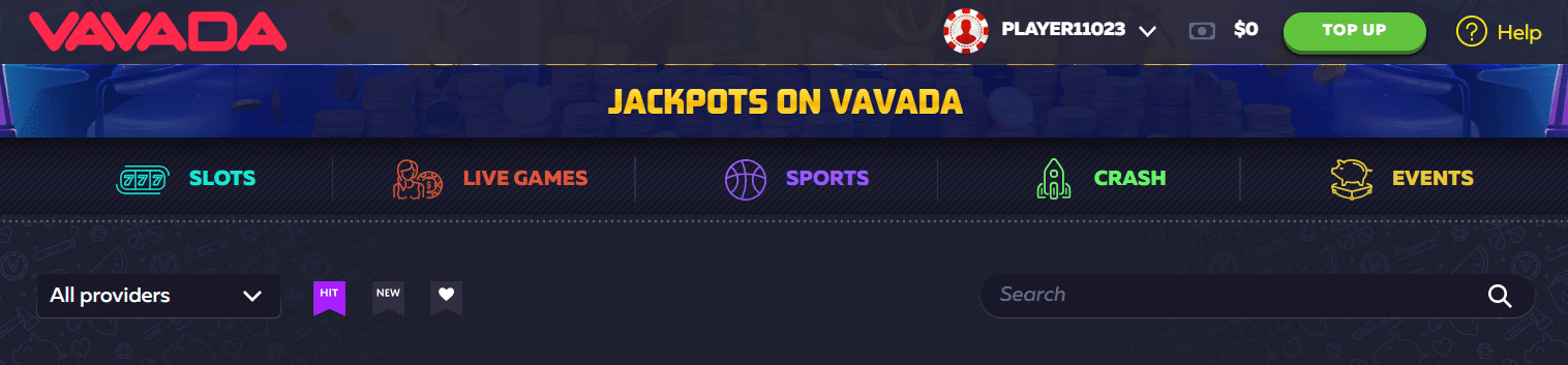You can review games that have gotten recently been added here, ones that Vavada has dubbed hits, and products you have favorited. You cannot check out only the spinners with a bonus buy option, the Megaways ones, those with jackpot wins, and so on. Thus, the filtering here is pretty limited. Still, you can weed out games from specific providers that work with this brand and search for ones you have already heard of.
