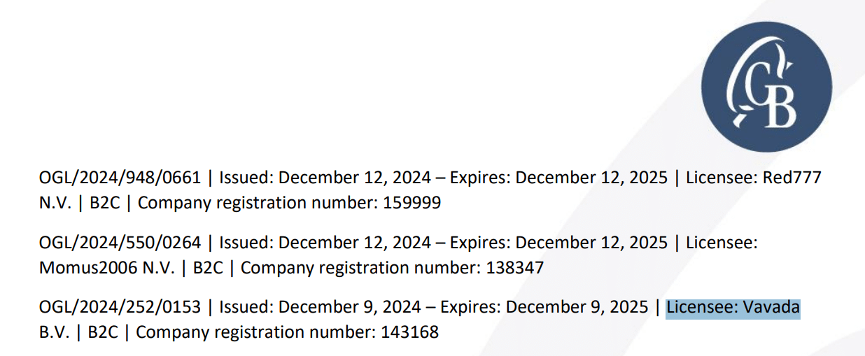 We read that Vavada had a license issued by the Curacao Gaming Control Board. Yet, we saw no footer mention of this. So this prompted us to go to this regulator’s website and check its register, where we did see that, in fact, Vavada has a gaming license provided by this body – 048/JAZ2017-035 – Issued on December 9th, 2024.