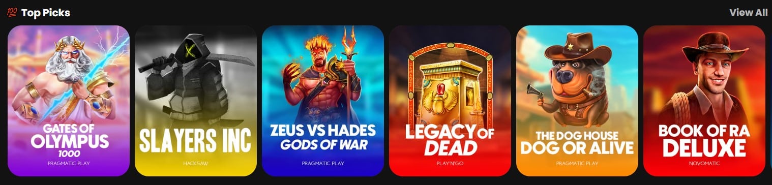 In the Crypto Games tab, inside the slot area, you will find all provably fair-style genres hosted here, with such creations offered up by Hacksaw Gaming, Fugaso, Spribe, Gamzix, Evoplay, and Smartsoft Gaming.