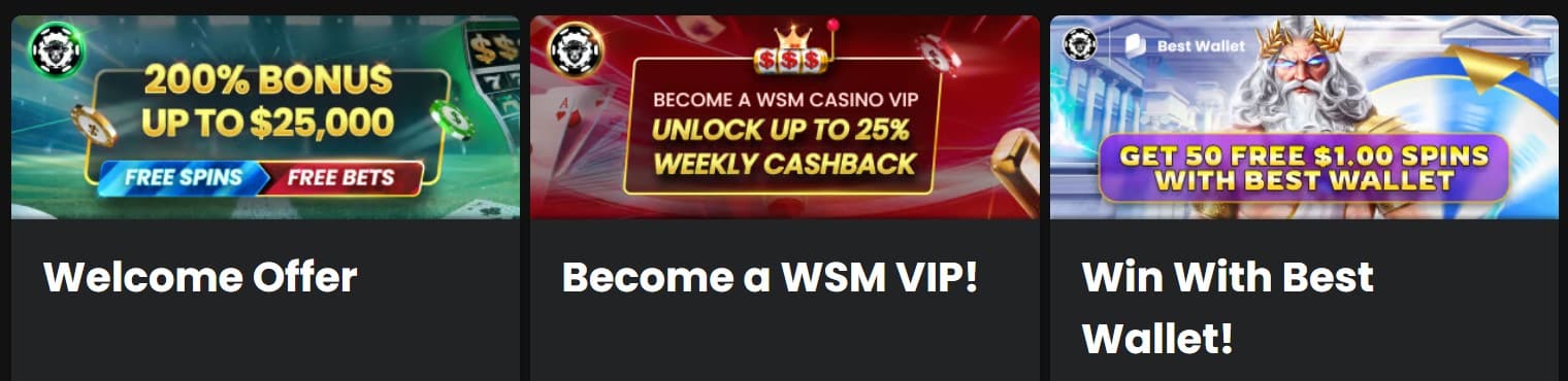 We say yes. WSM Casino has promos with fair T&Cs, such as wagering requirements of 35x, reasonable bet limit, win caps, and other features. We weren’t disappointed with what we found.