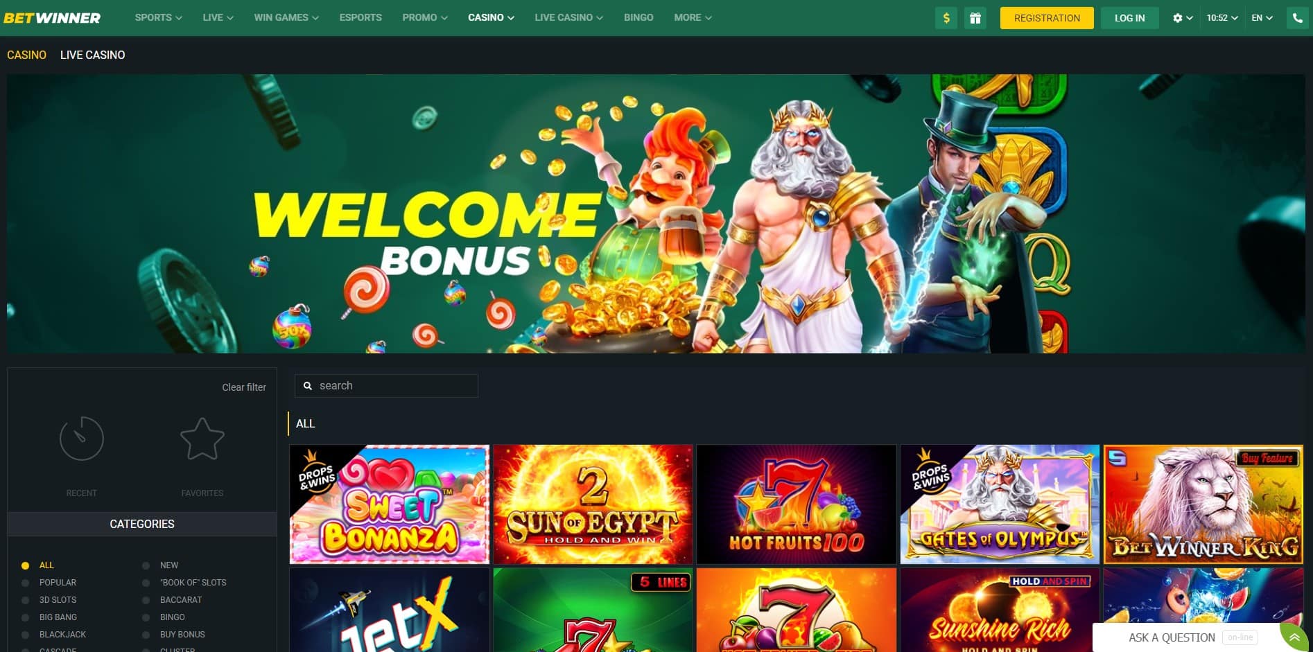 Tras entrar en el casino online, los usuarios de BetWinner pueden elegir inmediatamente entre las categorías que incluyen los géneros Popular, Big Bang, Blackjack, Juego de Jackpot, Lotería, Otros, Ruleta, Nuevo, Baccarat, Bingo, Keno, Póker o Juegos de Mesa. Si prefieren las tragaperras, las subsecciones de tragaperras incluyen 3D Slots, Cascade, Drops & Wins, Jackpot, New, Popular, “Book Of” Slots, Buy Bonus, Cluster, Hold and Win y MegaWays slots. También puedes buscar juegos de azar en Internet basados en los que has jugado recientemente o en tus propios favoritos: una lista de títulos que prefieres. Por último, buscar juegos en función de su título o proveedor de software es una opción.