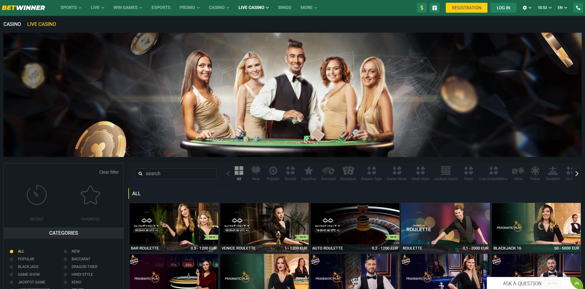 Mientras que a la mayoría de los juegos de casino de BetWinner se puede jugar gratis y con apuestas de dinero real, a los juegos con crupier en vivo sólo se puede jugar con este último. No obstante, todos deberían estar optimizados para móviles.