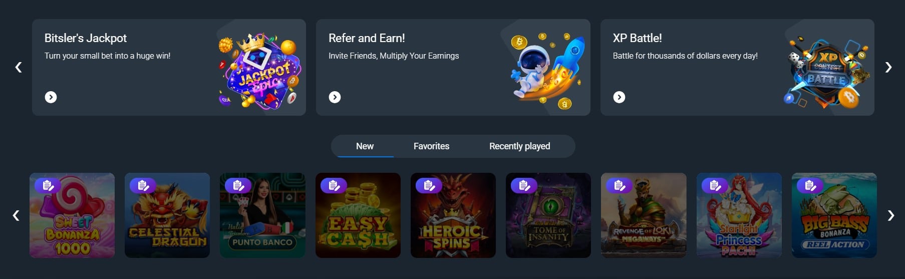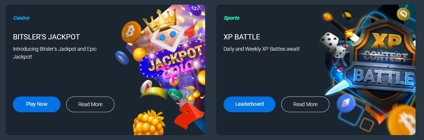 El conjunto de promociones Bitsler que se ofrecen es inmenso. Si accedes a la pestaña Promociones del menú desplegable de la izquierda, verás todo lo que puedes conseguir, o puedes ver las principales promociones que aparecen en los banners de la página de inicio.