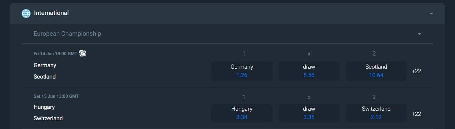 Por lo que hemos podido ver, la página de apuestas de este centro debe cubrir más de mil eventos previos al partido. Incluye todos los deportes populares. Además, apuestas de nicho como baloncesto 3×3 y surf que rara vez vemos. También tiene una sección de eSports bastante buena, y también puedes hacer apuestas políticas y de entretenimiento aquí. No reconocemos la solución de software de apuestas que utiliza esta plataforma, pero parece moderna.
