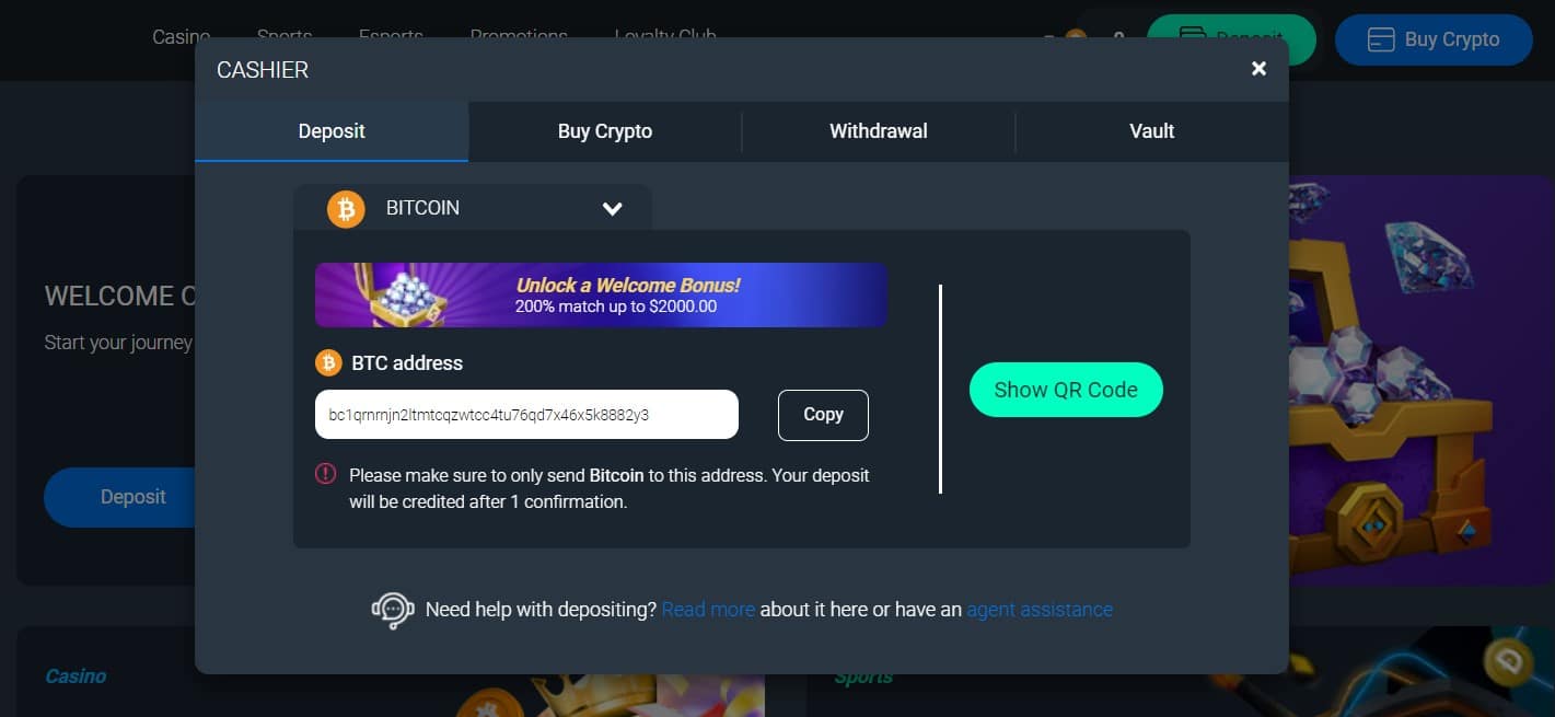 Al registrarte, obtienes un bono sin depósito de 0,02 $ de criptomoneda Satoshi. Cuando ingreses fondos en tu cuenta por primera vez aquí con al menos 20 $, tendrás acceso a una bonificación del 200% hasta 2.000 $. Esta promoción se reparte en veinte lotes iguales. Éstos se desbloquean a medida que aumenta tu cuenta de puntos de experiencia. Más adelante hablaremos de ello. El máximo potencial de dinero jugable a partir de un depósito de 1.000 $ es de 3.000 $. Sólo puedes reclamar esta bonificación de bienvenida una vez, válida durante treinta días a partir del día en que realices tu depósito inicial en el sitio.
