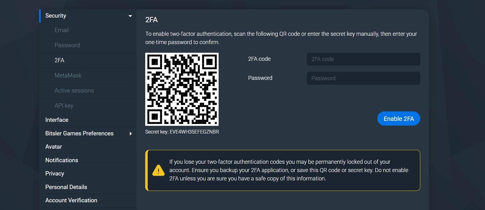 El sitio te permite comprobar tus transacciones anteriores y ver estadísticas detalladas sobre tus actividades de apuestas aquí. Si te preocupa la imparcialidad del juego, puedes dirigirte al Centro de Ayuda y comprobar cómo puedes verificar la aleatoriedad de cada resultado. Dentro, también puedes leer cómo configurar la autenticación de dos factores para aumentar tu seguridad y analizar tus registros de inicio de sesión.