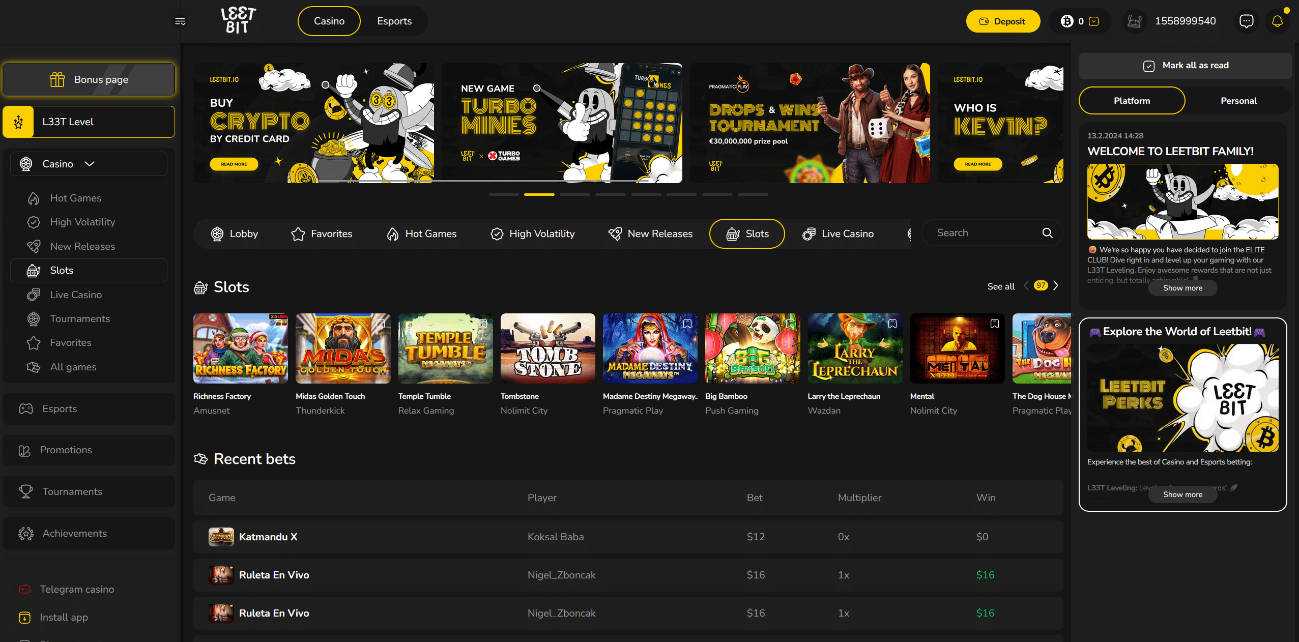Leetbit ofrece casi 7.000 juegos de casino, deportes electrónicos y, supuestamente, no aplica el sistema KYC.