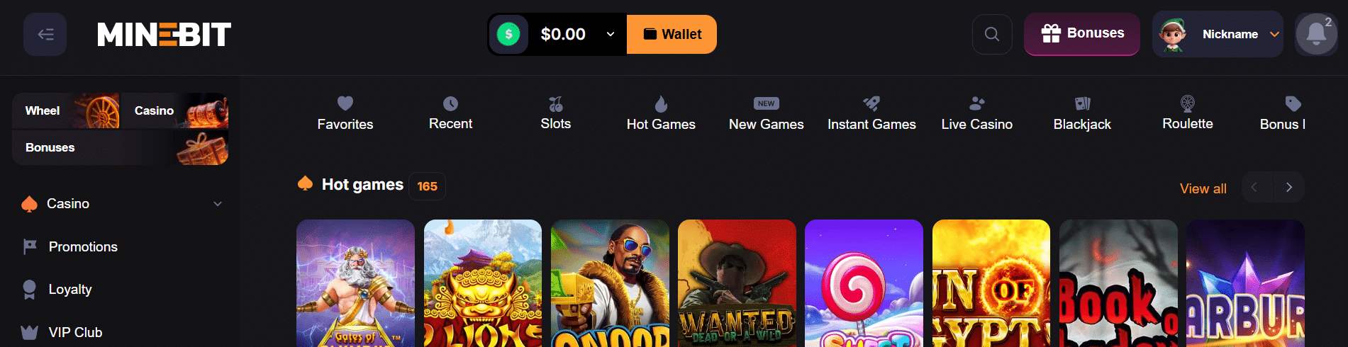 MineBit es un criptocasino de 2026 que ofrece una buena selección de juegos, un gran servicio de atención al cliente y distintos tipos de bonificaciones, muchas de las cuales están vinculadas al programa de fidelidad del sitio.