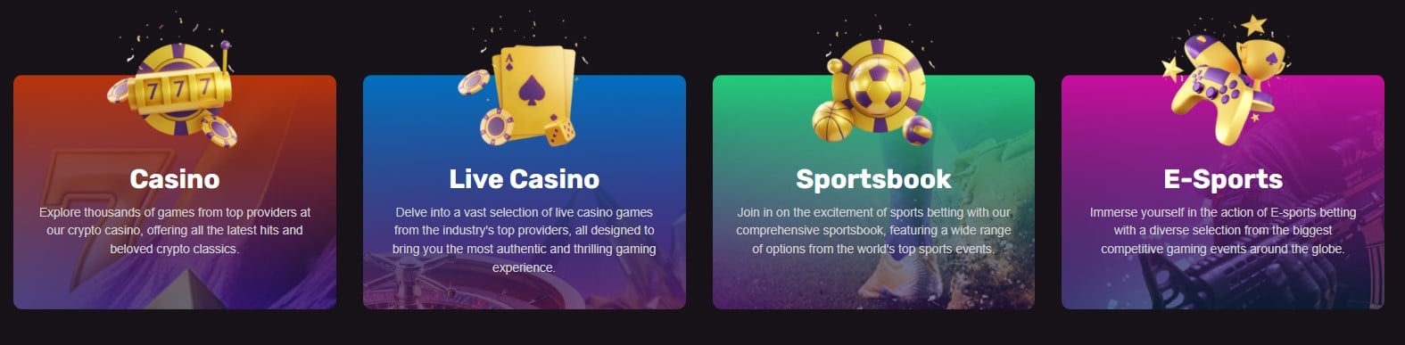 Bitx Operations N.V. es el propietario y operador de este criptocasino con sede en Curaçao cuya interfaz se puede ver en inglés, ruso, portugués, sueco, español, turco, danés, noruego y alemán. Cuenta con un catálogo de juegos de unos cuatro mil productos, acepta diez criptomonedas y tiene un paquete de bienvenida distinto de cuatro partes para jugadores de casino y deportes. Esta plataforma intenta atraer a su redil a los entusiastas de los juegos de azar con sorteos, y para los apostantes, les ofrece una casa de apuestas deportivas SoftSwiss tan impresionante como la que se puede encontrar en otros sitios que utilizan este software.